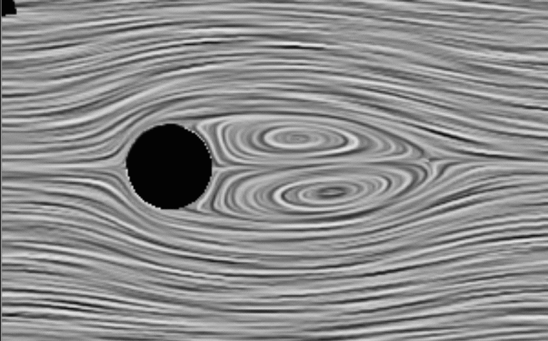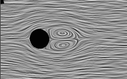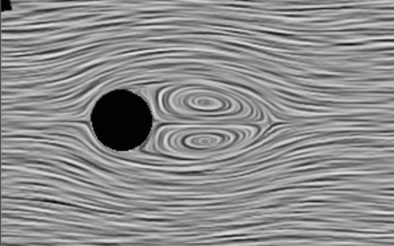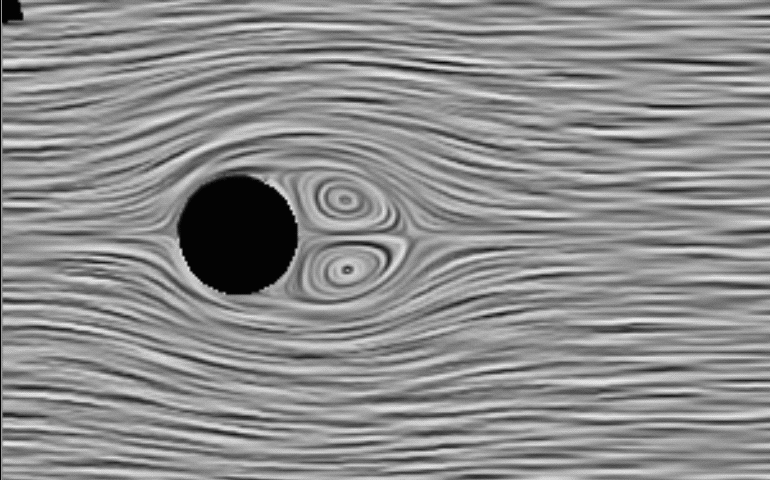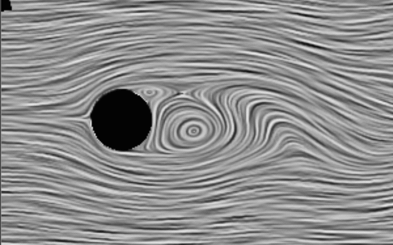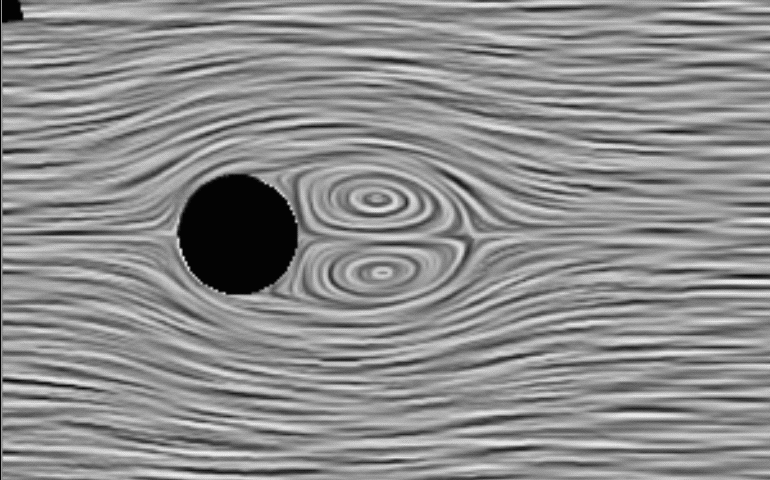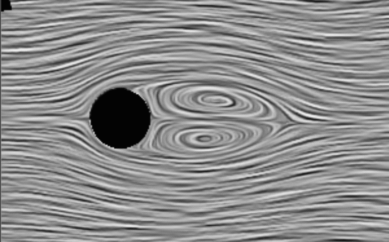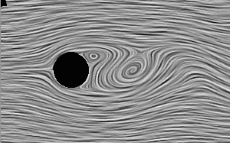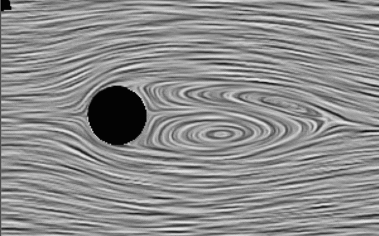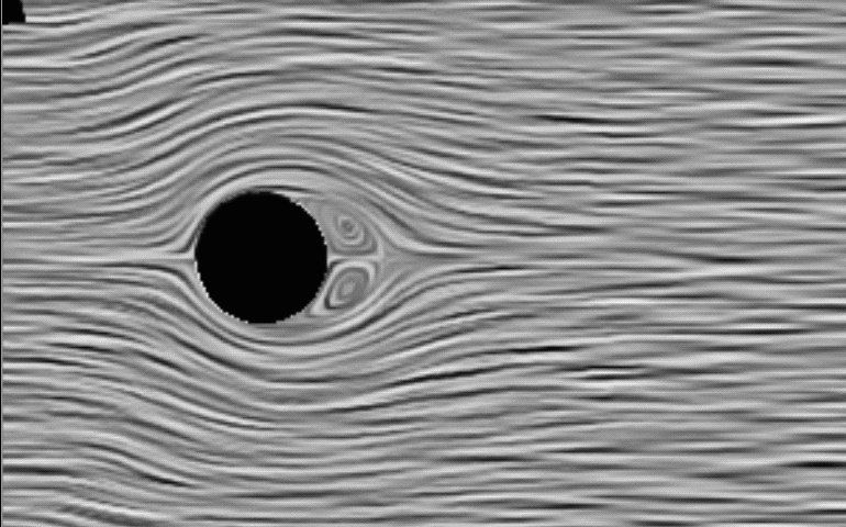 LIC for Navier Stokes - flow around a cylinder (Re=100)