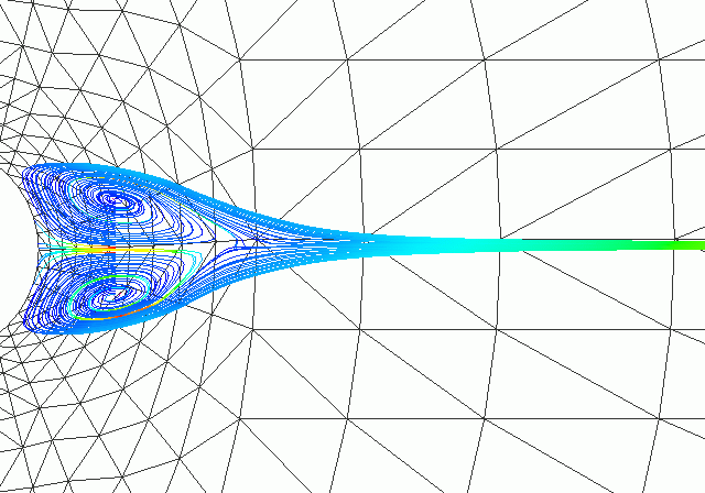 streamlines from particles released behind the cylinder