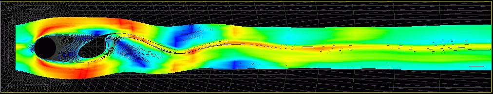 Streamlines for Navier Stokes - flow around a cylinder (Re=100) t=80