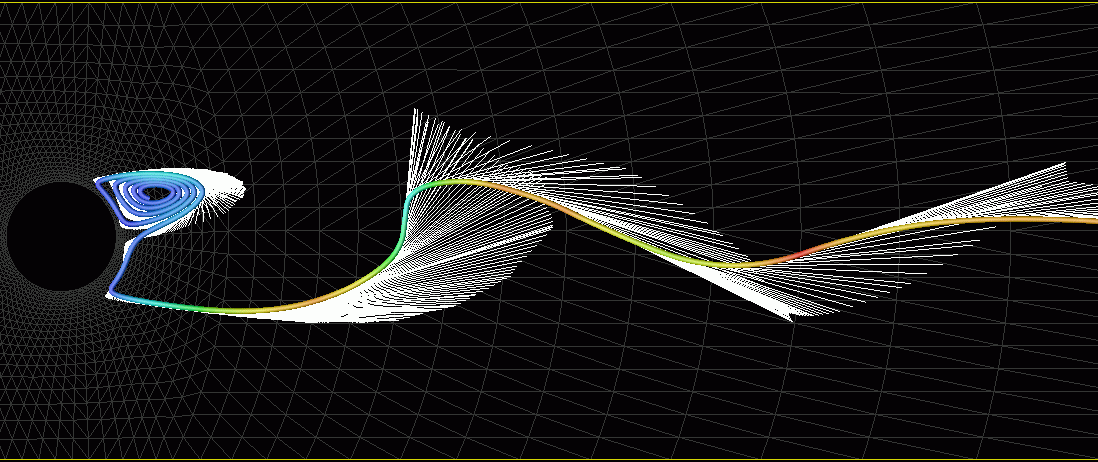 - 100 particles released behind the cylinder